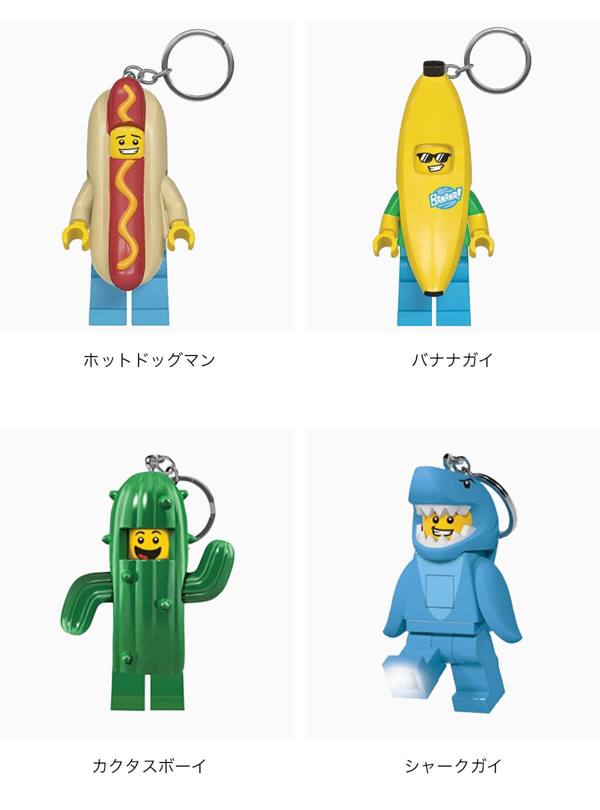 LEGOのキャラクターに、ライト機能が加わった機能的でユニークなシリーズです。キャラクターの足裏にライトが付いており、腹部のスイッチボタンを押している間LEDライトが点灯します。
