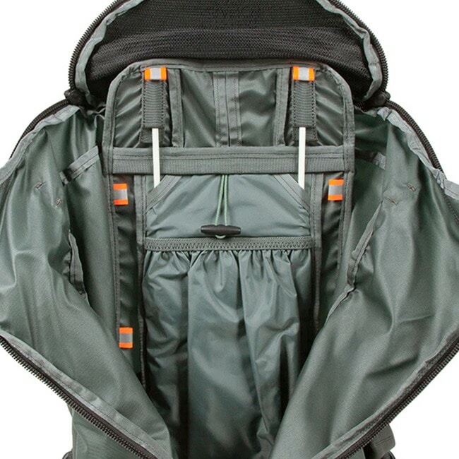 3ジップの優れたアクセス性にボトムアクセスが加わりました。2 本のグラスファイバーロッドが垂直方向に配され、腰及び背中全体に荷重を分散し、安定して快適に背負うことできます。