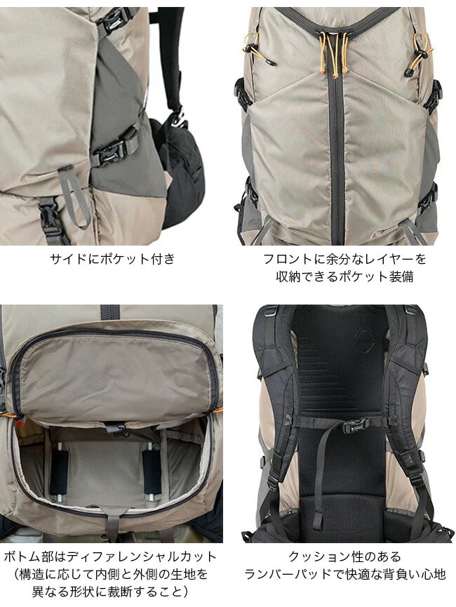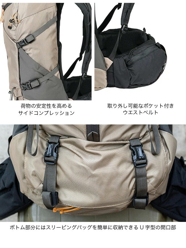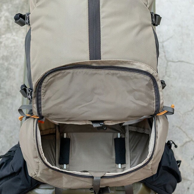 3ジップの優れたアクセス性にボトムアクセスが加わりました。2 本のグラスファイバーロッドが垂直方向に配され、腰及び背中全体に荷重を分散し、安定して快適に背負うことできます。
