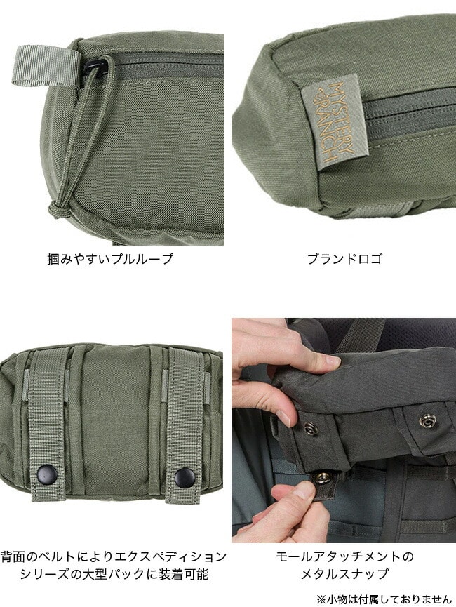MOLLEシステム対応のためエクスペディションシリーズのウェストベルトに追加的に使っていただけます。背面の横向きスリットにウェストベルトのウェビングを直接通すことでMOLLEシステムが付いていないモデルにもお使いいただくことも出来ます。 (全てのモデル対応ではありません)