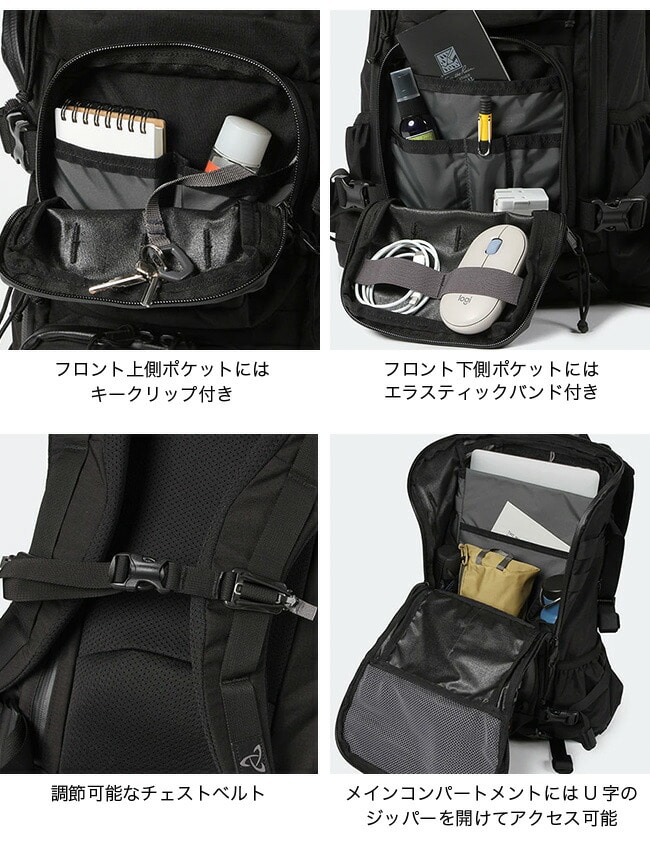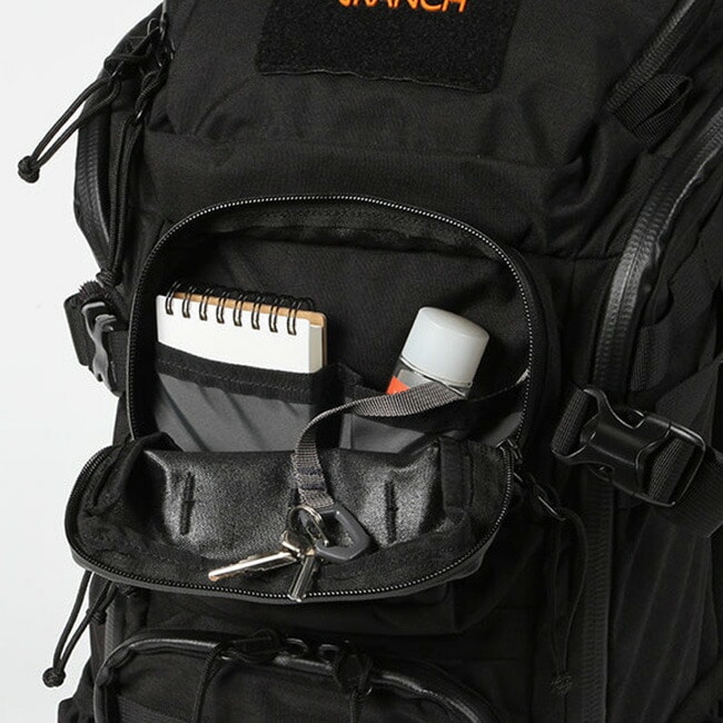 ・:3つのメインポケット(1つはキークリップ付き)とMOLLシステムで収納力アップ