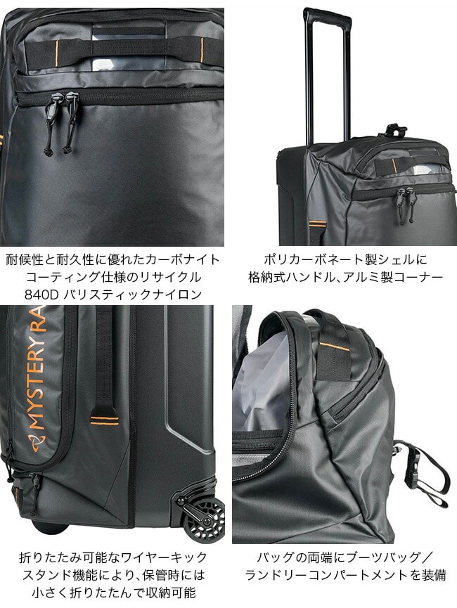 このシリーズは、耐候性と耐久性に優れたカーボナイトコーティング仕様のリサイクル840Dバリスティックナイロンを使用し、ポリカーボネート製シェルには格納式ハンドルとアルミ製コーナー&ホイールプロテクターが装備されています。