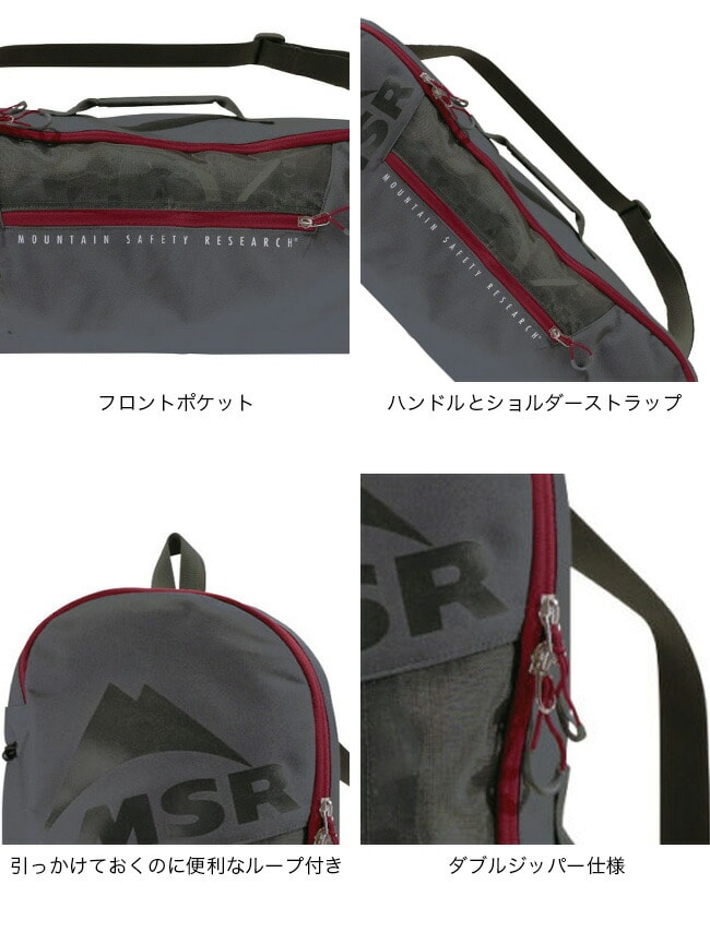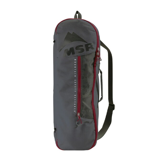 クランポンをもつスノーシューを安全に、スマートに持ち運びできます。内側にはプローブ等を固定するスリーブがあり、ポールは外側のストラップに取り付けできます。