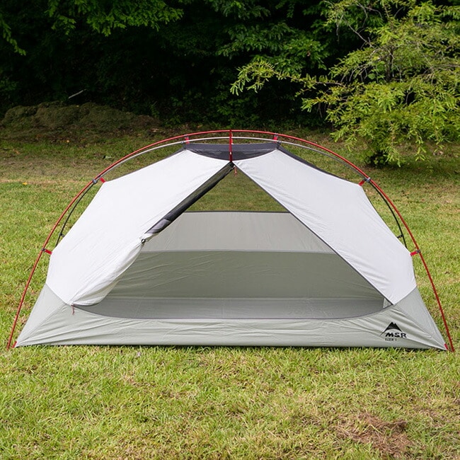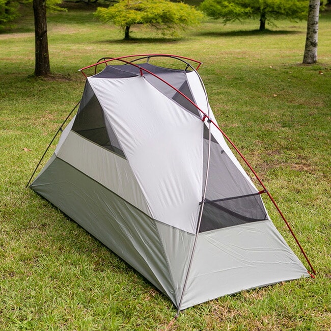 これまでは前室をつくるために2箇所のペグダウンが必要でしたが、それが1箇所のペグダウンで済むようになり、設営がよりスムーズになりました。