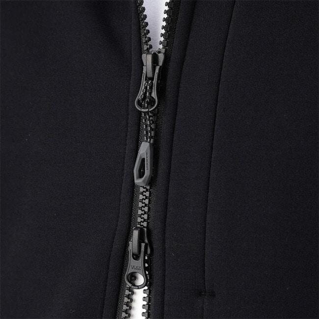 2つのサイドポケットと胸のジッパー付きポケットはとても機能的。肌触りの良い暖かな高品質のテックフリースを使用し、タイムレスなデザインで多目的に使用できます。