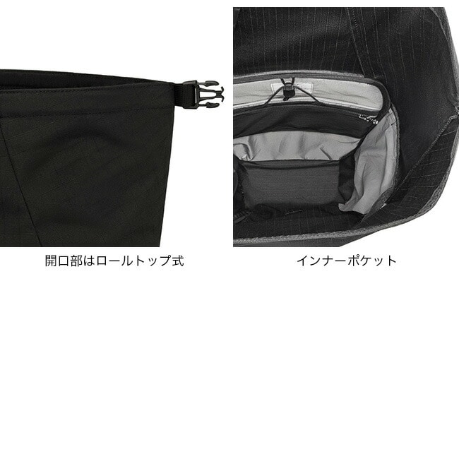 開口部はロールトップ式のため、荷物の量に合わせてボリュームの調整が可能。