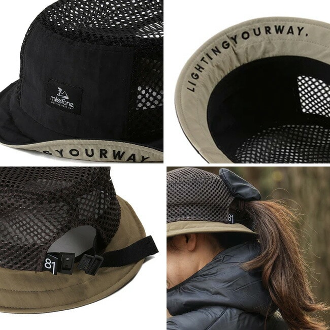 これまでご要望の多かったハットが、ついに商品化。ツバ裏の『LIGHTING YOUR WAY』の刺繍や、ワイヤー入りのツバなど、milestoneらしいディテールを残しつつも、キャップとはまた違った表情で楽しめる。