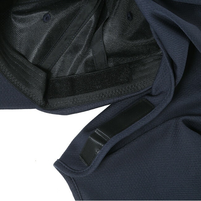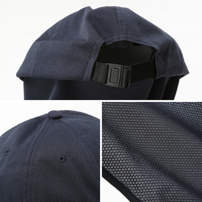 サンシェードはマジックテープで取り外し可能。吸汗速乾機能を持った汗帯テープ付でバックベルトはサイズ調整可能。
