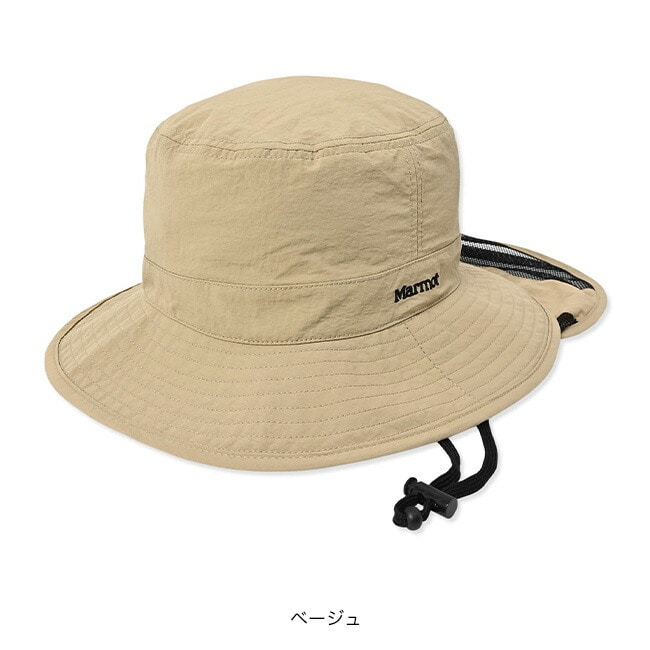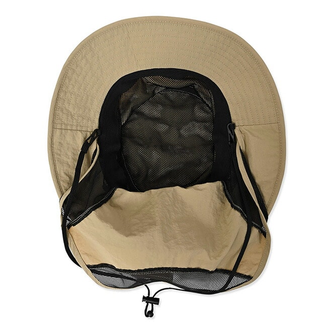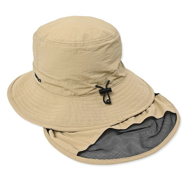 ワッシャータフタ素材と防蚊メッシュを採用したサンシェード付ハット