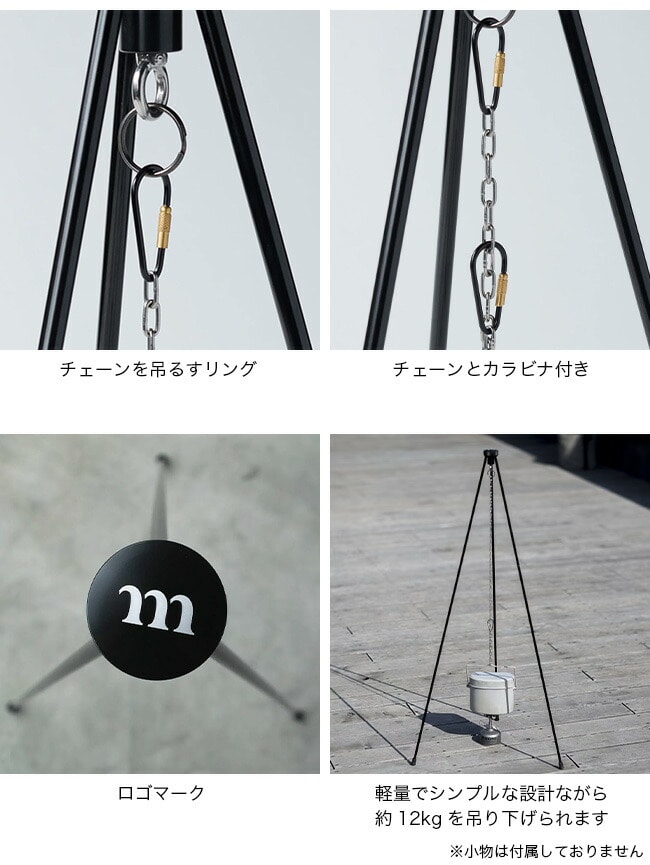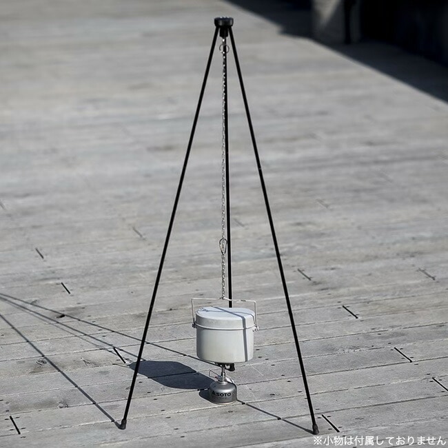 軽量でシンプルな設計ながら、約12kgを吊り下げられます。ランタンハンガーとして、またバーナーを用いた調理の際にクッカーを吊る事で安定した作業が可能。