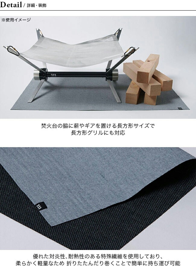 金属加工工場での溶接作業時に設備を火花から守るためのシートを、焚火用として応用しています。