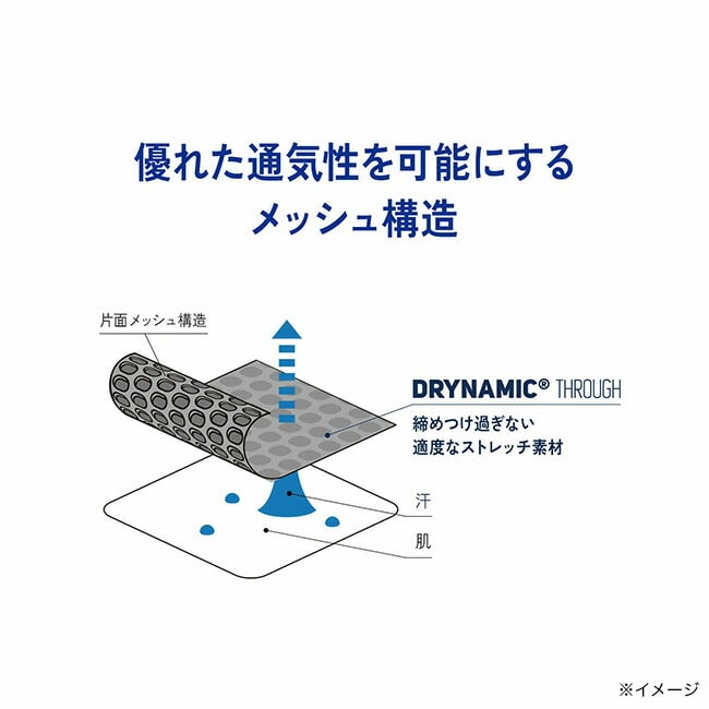 ■素材:ドライナミック スルー(ポリエステル90%、ポリウレタン10%)