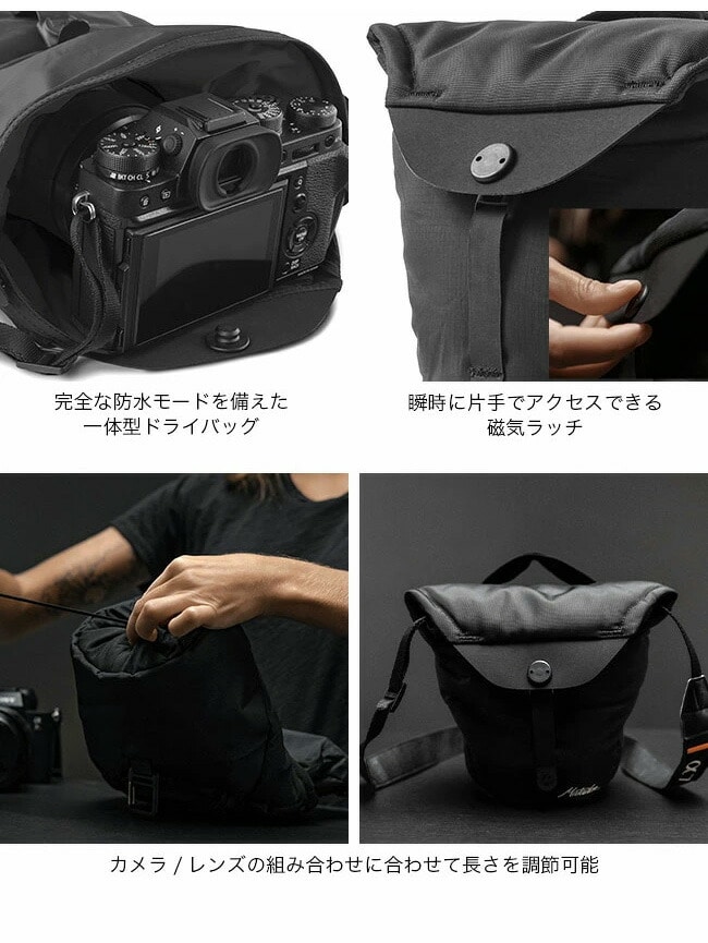 安全なマグネットクロージャーシステムは、すぐにカメラにアクセスできるように最適化されており、シームシールされたライナーは完全な防水モードに変わります。