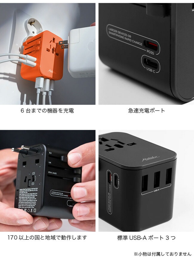 マタドール グローバルトラベルアダプターは、海外旅行中に機器を接続して電力を供給できるアダプターです。