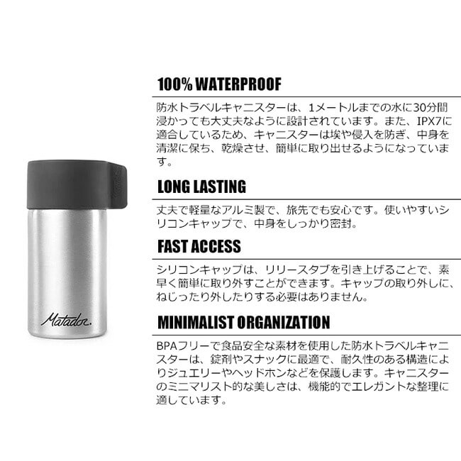 耐久性のあるアルミニウム製で中身を安全かつ乾燥した状態に保ちます。