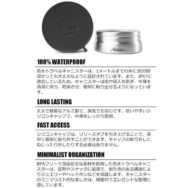 耐久性のあるアルミニウム製で中身を安全かつ乾燥した状態に保ちます。