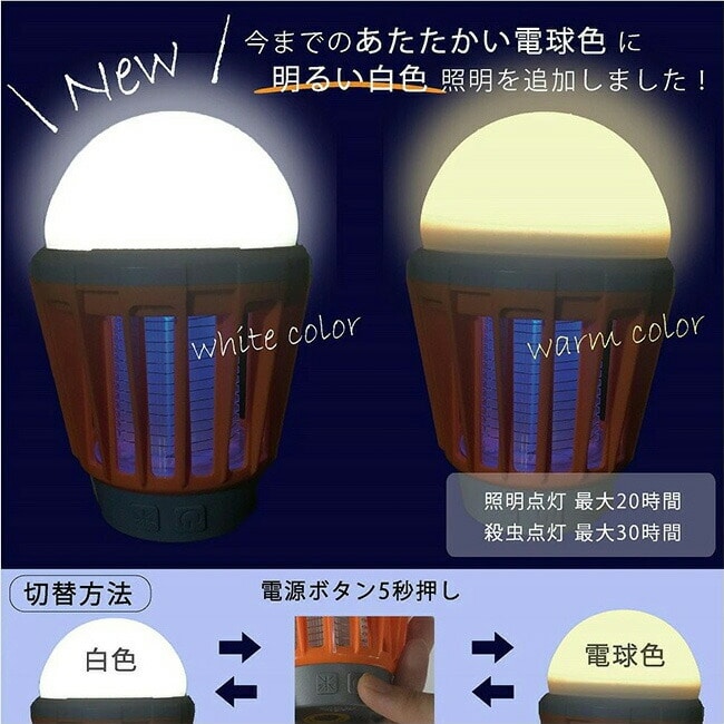 ランタン用スイッチを押すと、低モード、中モード、高モード、オフと切り替えられます。ランタン用スイッチを5秒長押しで電球色を切り替えます。