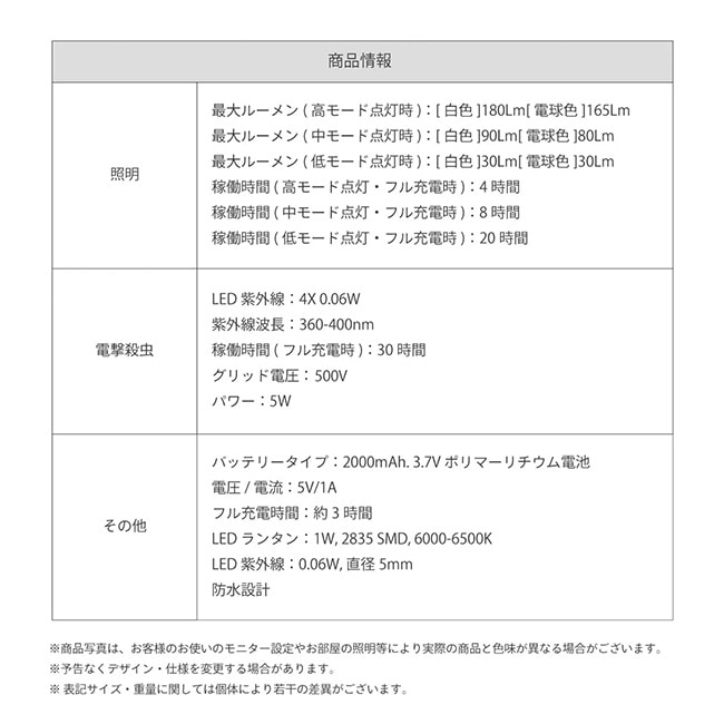 電撃殺虫のスイッチを押すとLED紫外線をオンまたはオフにできます。