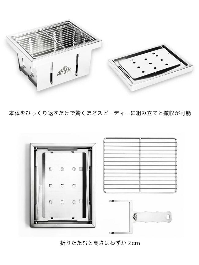 焼き加減を調整できる組立て・収納1秒の折りたたみ式グリル