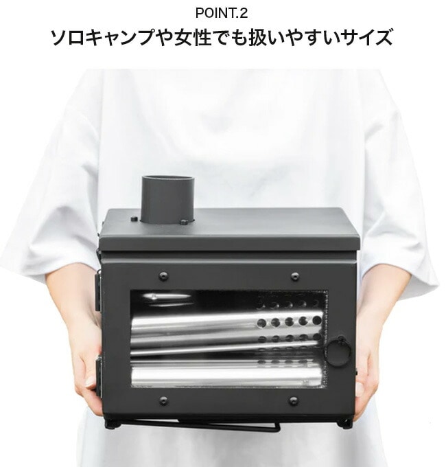 扱いやすいコンパクトサイズ、高い燃焼力、クリーンな煙、灰が残りにくい構造のため、初めて薪ストーブを使う方にもおすすめの1台です。