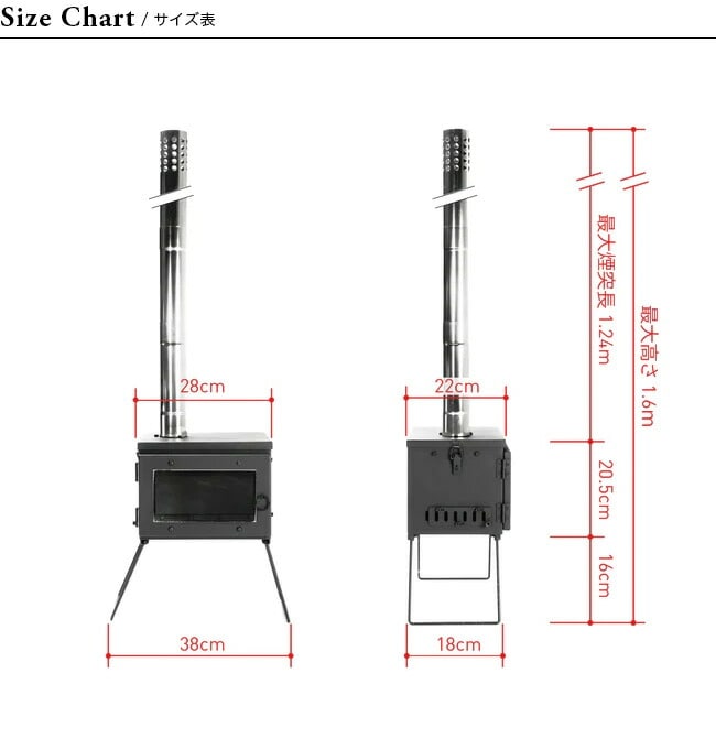 ■サイズ:外寸 (脚展開・煙突含まず) W29 × D22.5 × H38.5cm