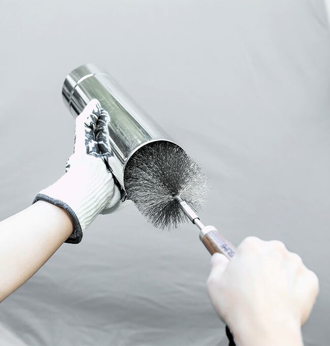 ステンレス製の細かな毛先が、煙突内に溜まったタールや煤をしっかりと落とします。