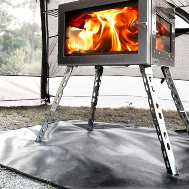 大型薪ストーブも安全に使える大判サイズの持ち手付き耐火シート。