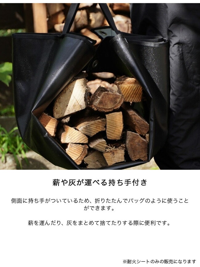・持ち手部分はポリエステル素材で火の粉に当たると溶けやすいため、薪ストーブや焚き火台を使用する際は持ち手部分を内側にしまってお使いいただくことを推奨します。