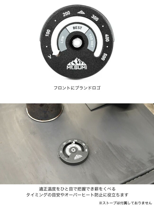 過度な過熱は薪ストーブ本体の破損や煙道火災につながる恐れがあり、大変危険です。本温度計を使用することで適正温度をひと目で把握でき、薪をくべるタイミングの目安やオーバーヒート防止に役立ちます。