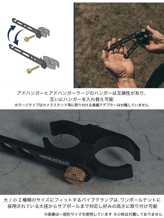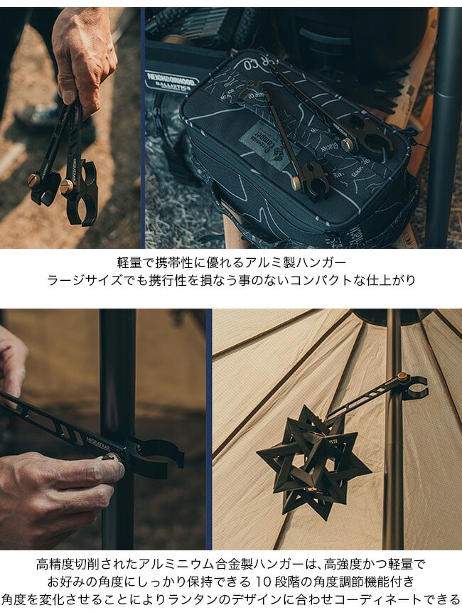 アドハンガーと同様に様々なサイズのポールへ、ランタンやシェラカップ等を掛けることが可能。