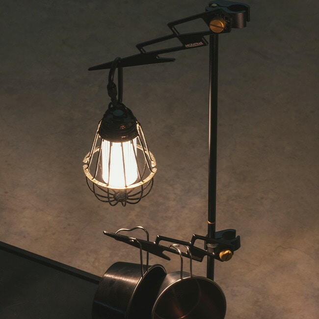 ランタンやシェラカップなど、様々な場所に掛けられる多用途ハンガー。丈夫で軽量なアルミニウム合金製、10段階角度調整機能付き。
