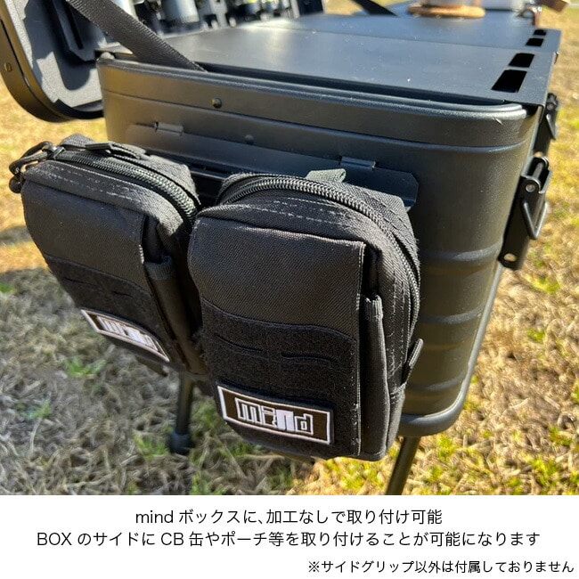 mindボックスに、加工なしで取り付け可能。BOXのサイドにCB缶やポーチ等を取り付けることが可能になります。
