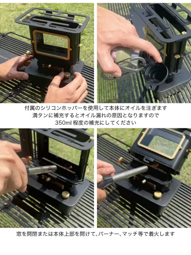 ※新たに芯を使用する場合、燃料が芯に完全に浸透するまで約15分ほどかかりますので、燃料が浸透してから点火してください。