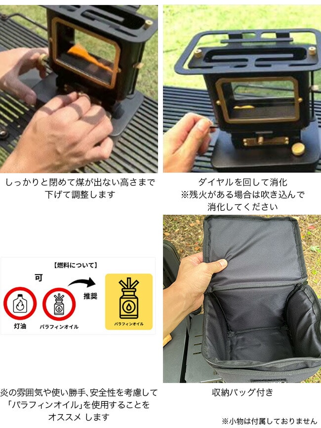 ※ガソリンやアルコールなど揮発性・可燃性が高い燃料は使用しないでください。
