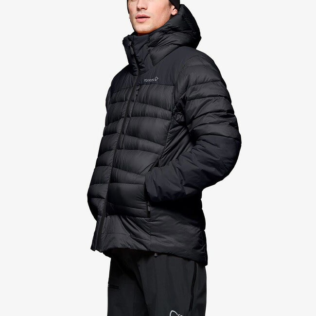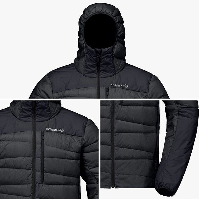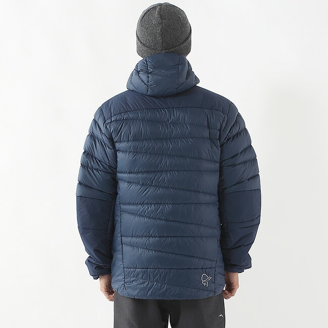 肩、側面、肘下は摩擦と圧縮によるダウンの劣化を考慮して化繊 を使用し、肩部分は内側がダウン、外側が化繊の2層構造で保温性と耐久性を両立させています。