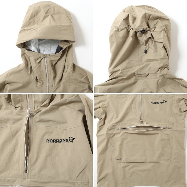 軽量な2.5層構造の防水透湿性素材「ドライ1」を採用した、軽量で柔らかいシェルアノラックです。