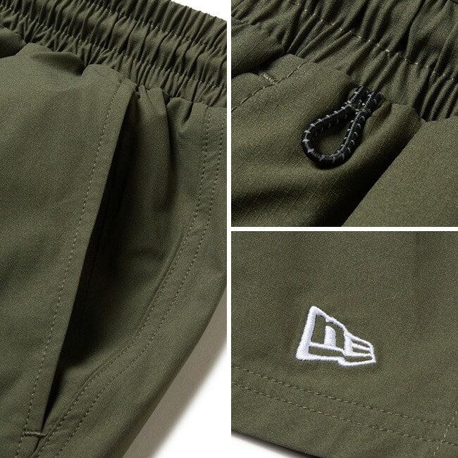軽やかな着用感を実現するメッシュライナー付きで、ウエストにフィット感を調整できるドローコードを配置しています。