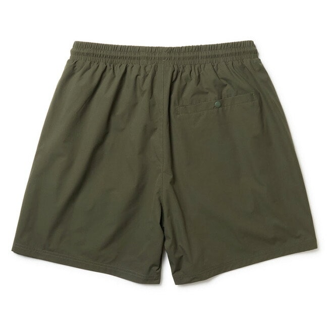 撥水性とストレッチ性を兼ね備えたリップストップ素材を採用しています。耐塩素加工により海やプールでも使用可能です。