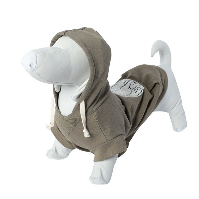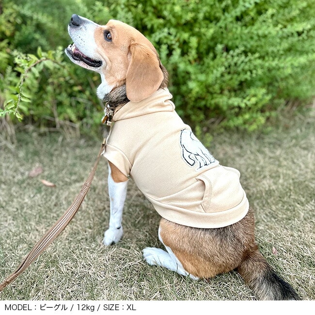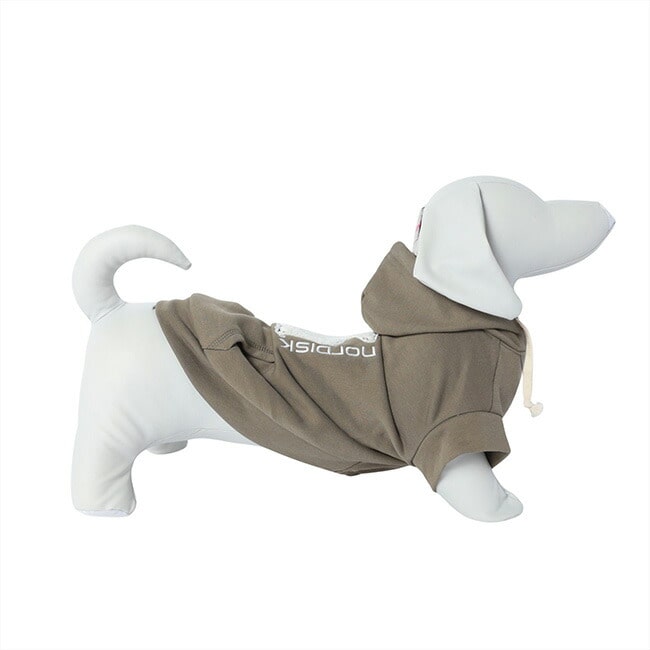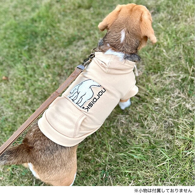 本格的なサガラ刺繍で仕上げたノルディスクの白熊ロゴがポイントの、可愛いペット用フーディです。