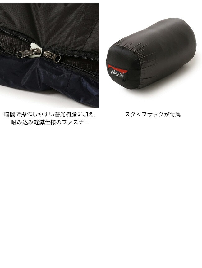 NANGAが独自に開発した防水透湿素材AURORALIGHTを採用したスリーピングバッグシリーズ。AURORA TEX LIGHTとは、極薄で軽量でありながらも、優れた耐水性を備えています。