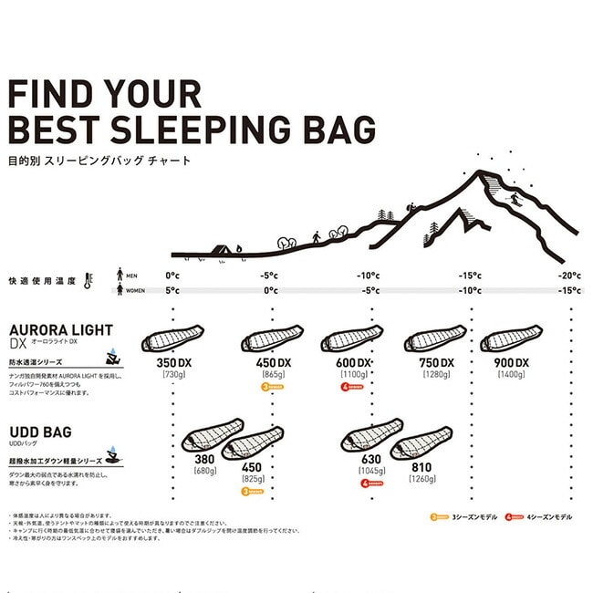 テント泊登山や縦走登山などで、「荷物をなるべく減らしたい方」「どんな天候にも対応できるスリーピングバッグをお探しの方」にオススメです。