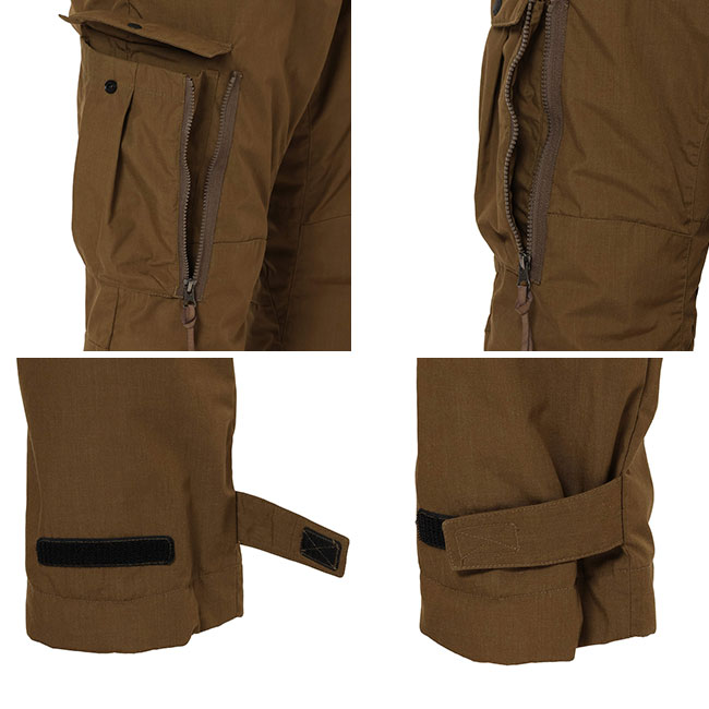 一見クラシカルなデザインの「ヒノックダウンパンツ」ですが、細部には現代的な機能性が詰まっています。