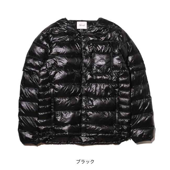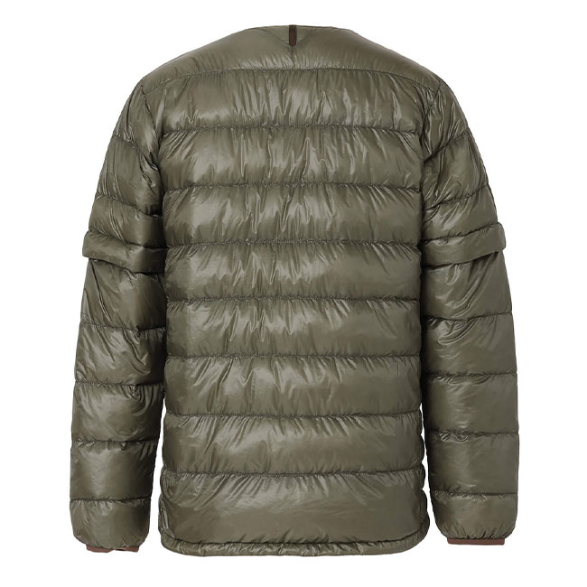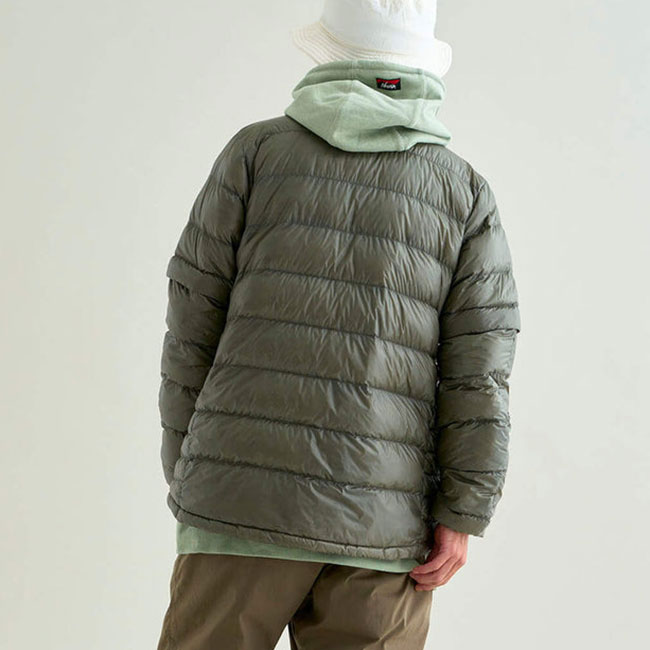 襟裏のループはジャケットを吊るすだけでなく、シェルジャケットやアノラックパーカーなどとリンクさせることができインナーダウンとして機能します。