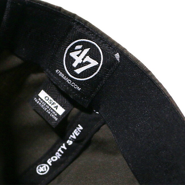裏のスベリ(汗止め)とパイピングにはFORTY SEVENのロゴデザインがアクセントに。