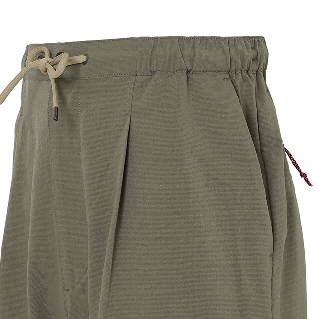 ワンタック入りのストレートフィットシルエットがすっきりとした印象を与えつつ、膝部分にタックを施すことで、日常の動作やアウトドアシーンでもストレスなく動ける設計に。