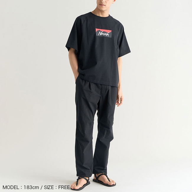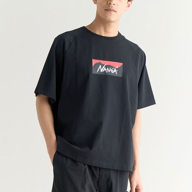 ナンガの象徴とも言えるボックスロゴをフロントにプリントした、定番のルーズフィットTシャツ。どのTシャツにするか迷ったら、まず手に取っていただきたい1枚です。