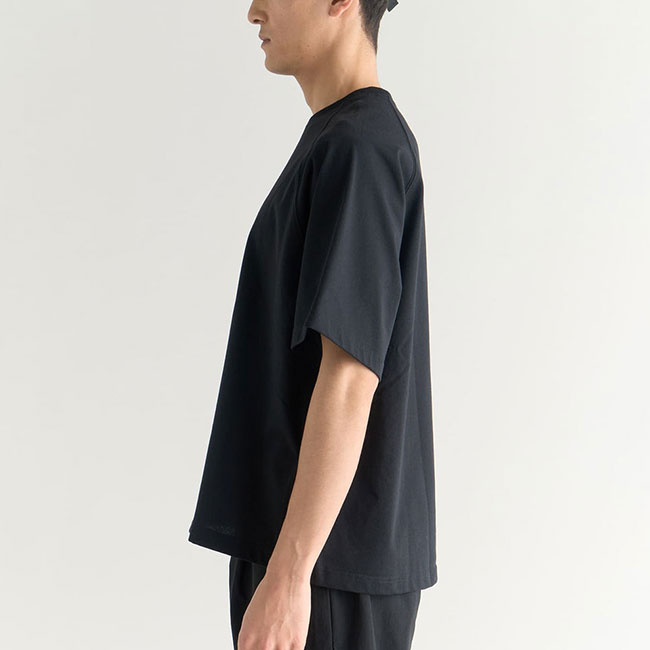 肩まわりはラグランスリーブで、動きやすさとリラックス感を両立しています。
