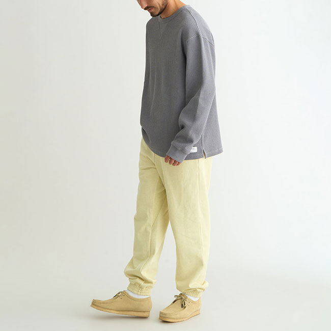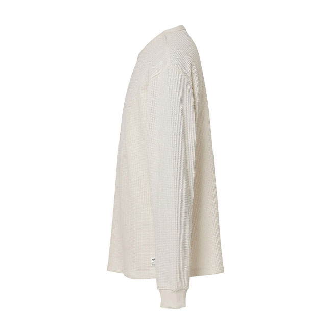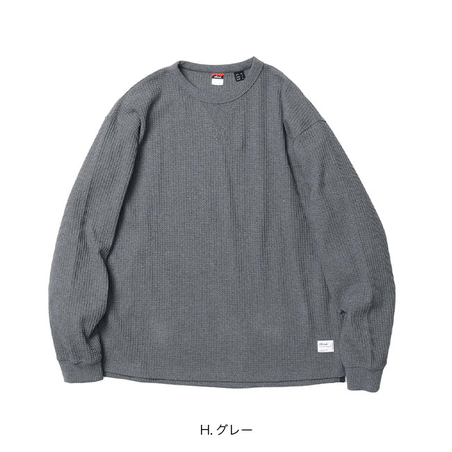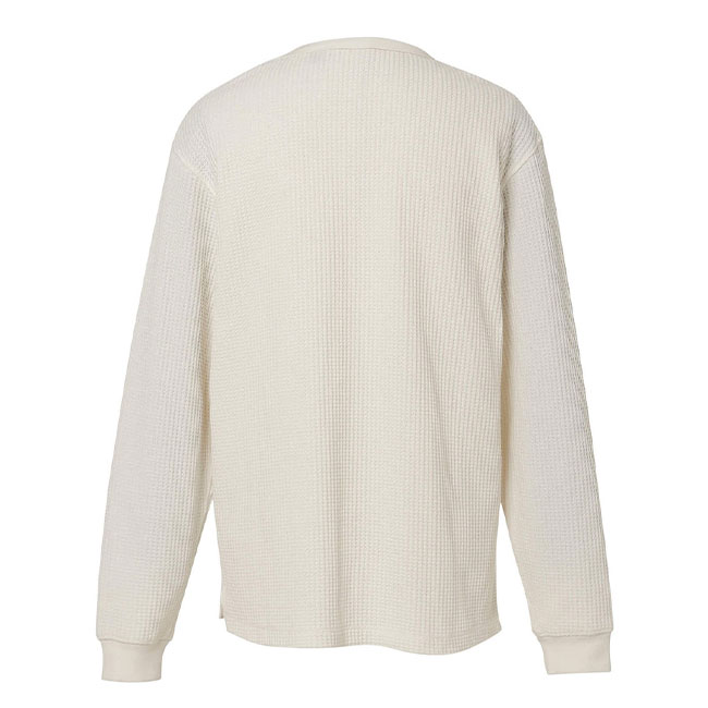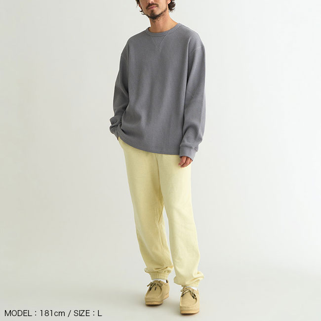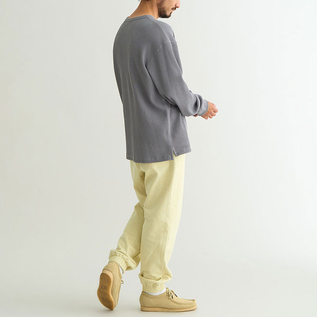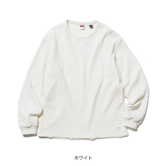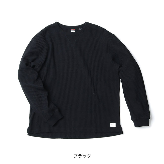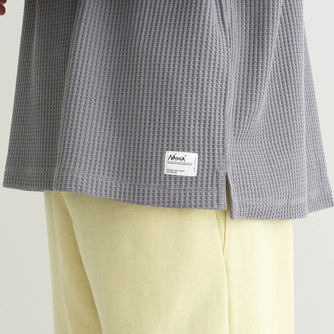 優れた通気性を持っているオリジナルの度詰めワッフル生地を使ったロングスリーブティー。サイズ感は身幅と袖回りにボリューム感があり、程よくリラックスしたシルエットになっています。