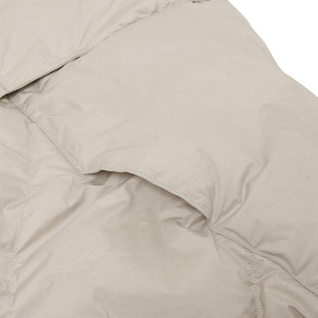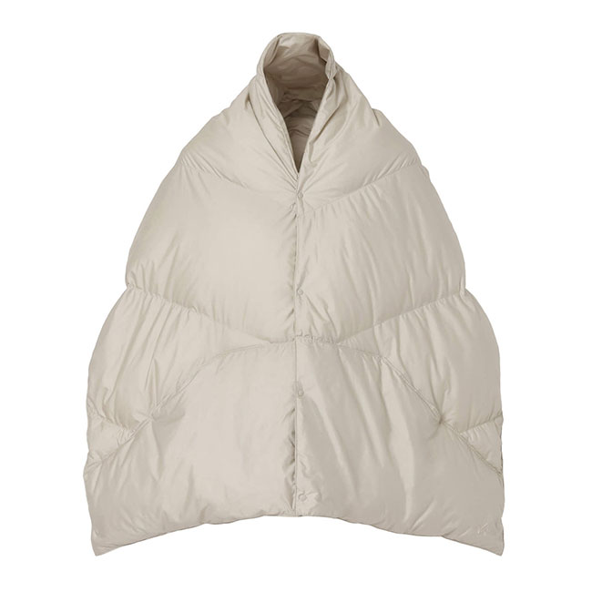 大判なシルエットのダウンポンチョマフラー。同素材やのNO COLLAR DOWN COAT / ノーカラーダウンコートとセットアップで着用可能。