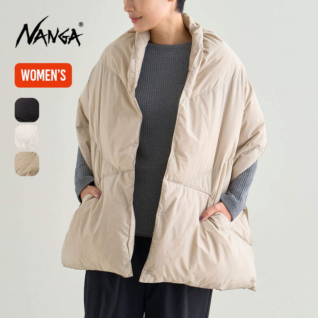 ・大判なシルエットのダウンポンチョマフラー